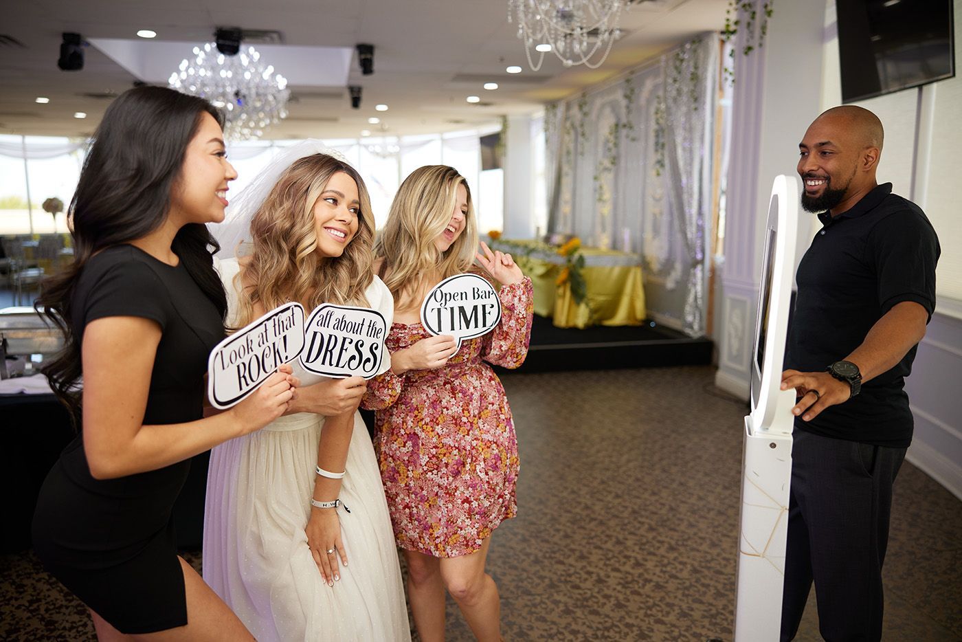 The Selfie Booth is an interactive extraordinaire. Your guests step right up and select a Still Shot, Animated GIF, or Boomerang GIF. After selecting their experience, they can choose a prop to interact with. When their session is complete they can access their image via email, text, or airdrop. Setup is simple and quick, space needed is minimal.